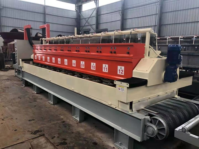 雙排多頭自動石材磨機(jī)(磨拋機(jī)械)包括橋式移動機(jī)架1,打磨機(jī)構(gòu)2,支承工作臺3,冷卻水系統(tǒng)和自動控制系統(tǒng)。橋式移動機(jī)架含一根橫梁和兩根導(dǎo)軌,橫梁縱向滑動;含磨盤的打磨機(jī)構(gòu),以其磨機(jī)架,在橫梁上橫向移動,雙排多頭…